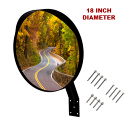 • 18 inch Convex Mirror, Wide Angle View, Premium Quality, Curved Security Mirror for many uses.  Contains 3 sets of screws to mount on any surface!
