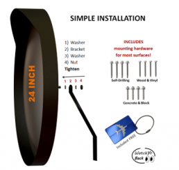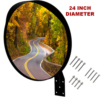 24 inch Convex Mirror, Wide Angle View, Premium Quality, Curved Security Mirror for many uses. Contains 3 sets of screws to mount on any surface!