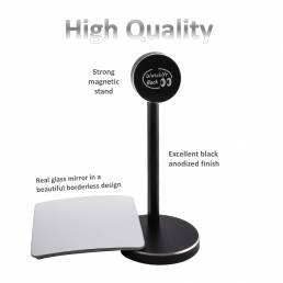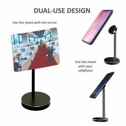 • EXCELLENT QUALITY, METAL, BLACK CELLPHONE STAND IS DUAL-USE – Use it with the mirror, OR easily remove the magnetically attached mirror and use the cellphone stand for your phone as well. We have included an extra magnetic metal disc just for this.